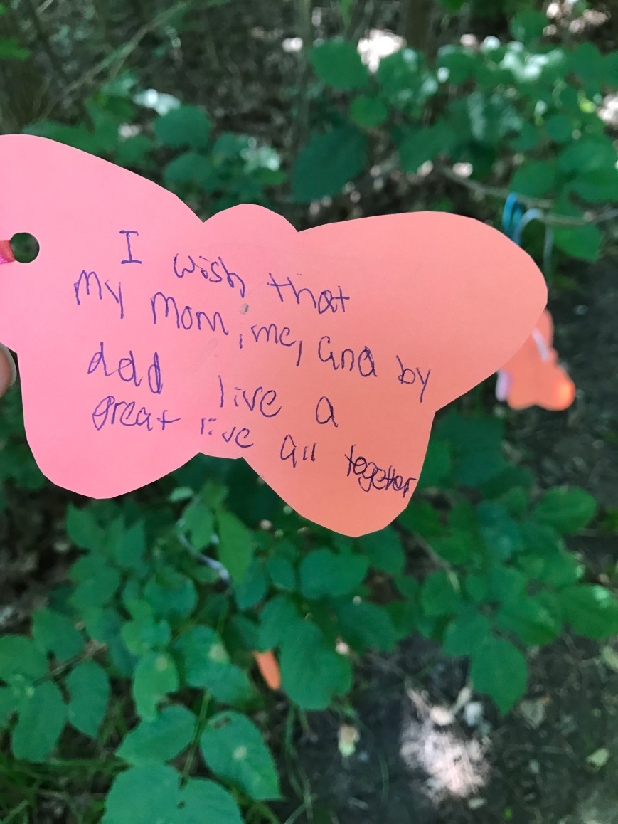 There's a small path in Burchfield Park, where children write wishes on paper butterflies and hang them from the trees.